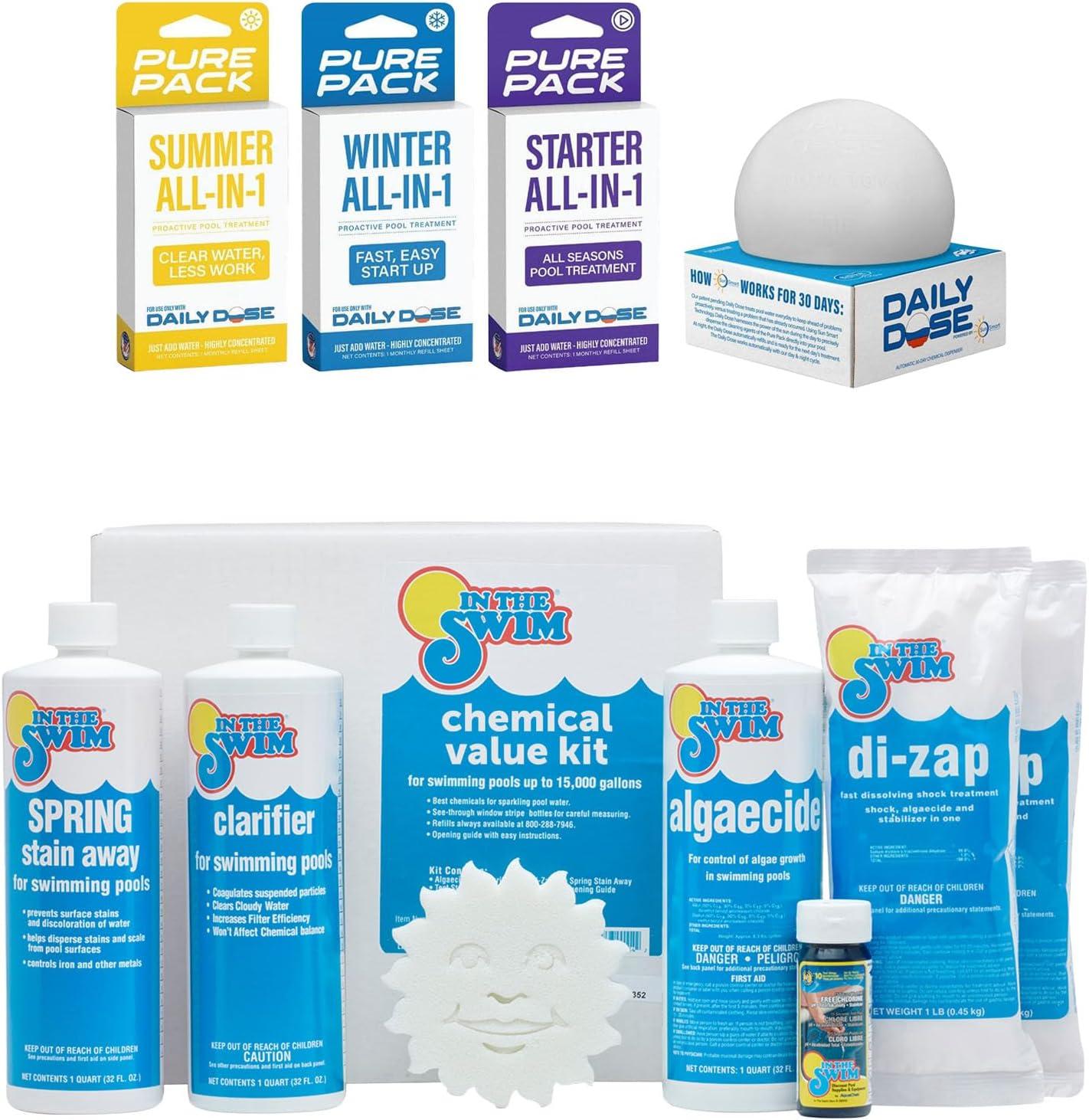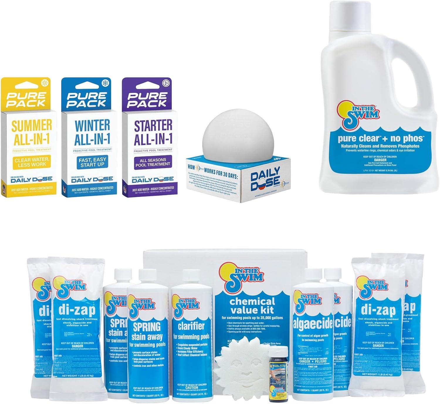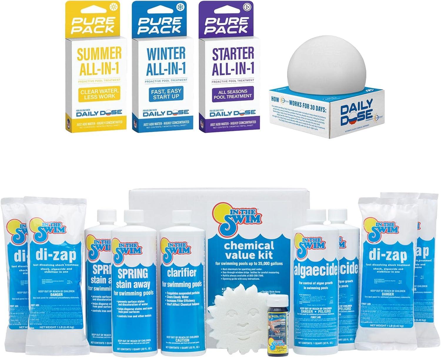 In The Swim Super Swimming Pool Chemical Value Kit – for Above Ground and In-Ground Pools – Treats Up to 35K Gallons(Kit + Daily Dose)